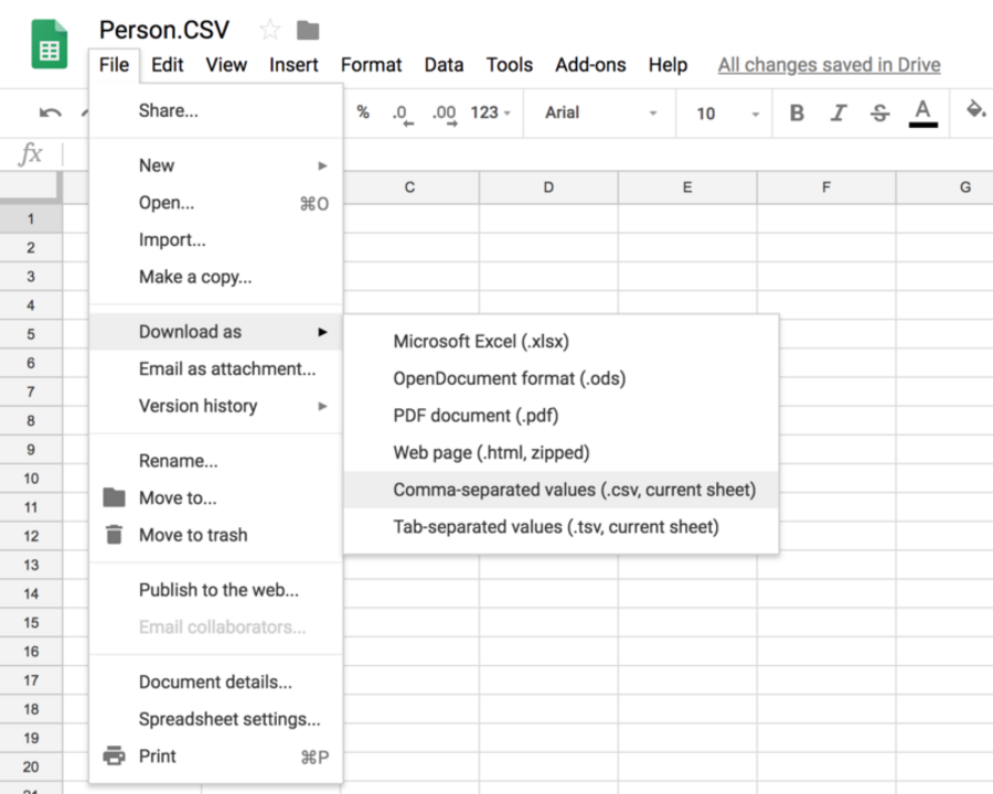 - In the file format drop-down menu, select CSV UTF 8 (Comma Deliminated) (*.CSV)